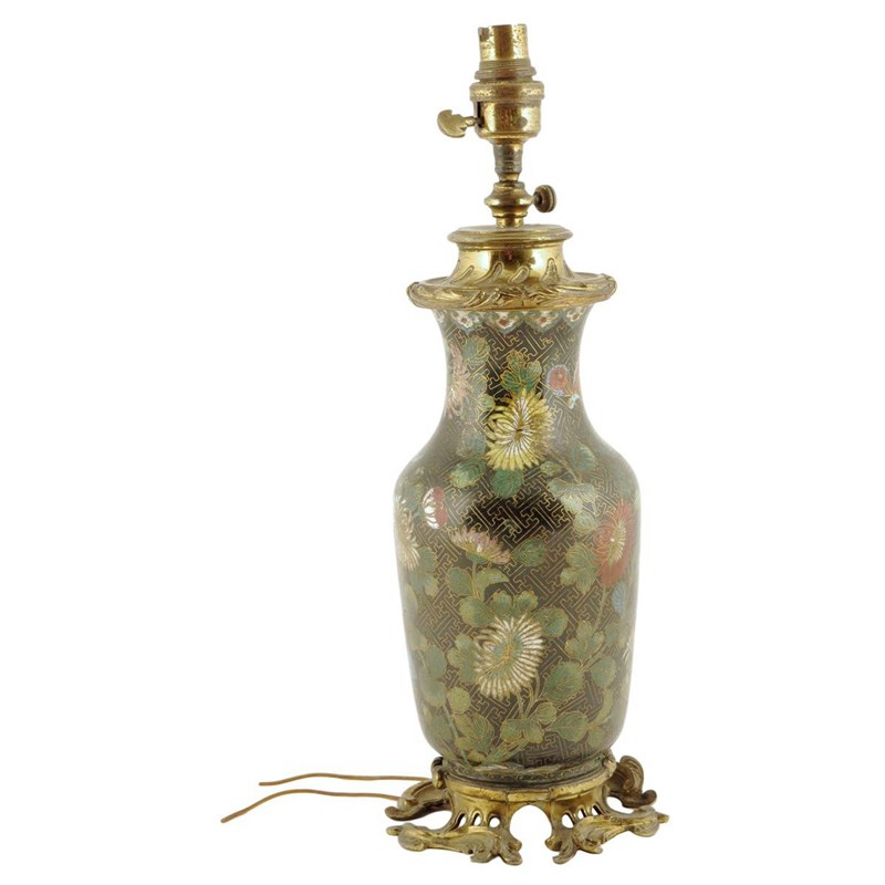 A 19th century cloisonné and gilt brass mounted table lamp, with an adjustable stem, 49.7cm high, (extended), 15cm wide.