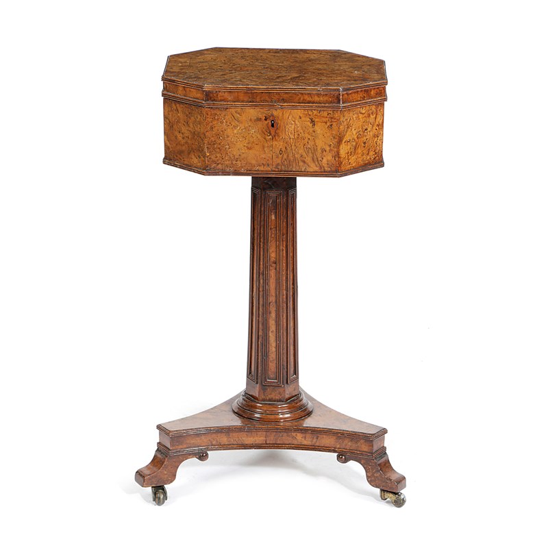 A REGENCY BURR YEW TEAPOY