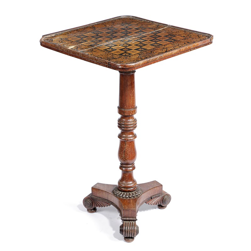λ A GEORGE IV ROSEWOOD AND PENWORK GAMES TABLE