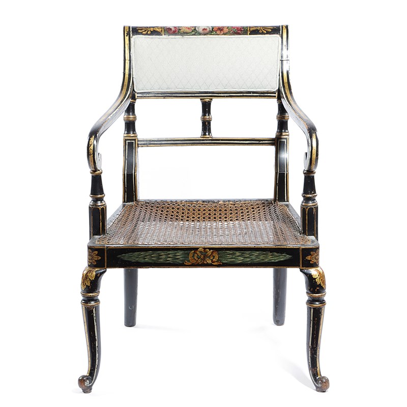 A REGENCY EBONISED AND PARCEL GILT ARMCHAIR