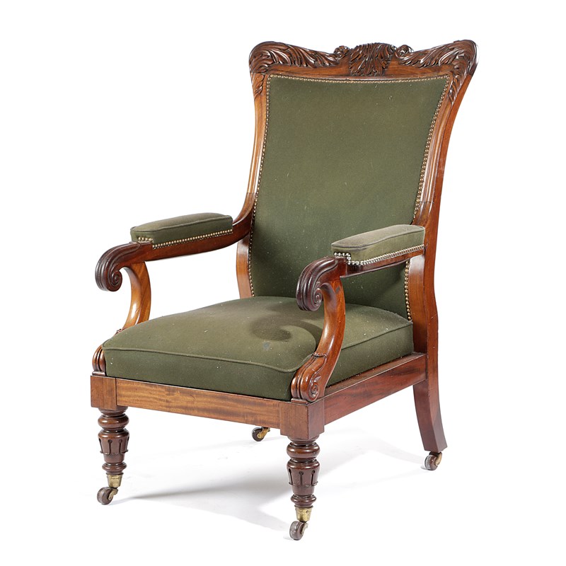 A WILLIAM IV MAHOGANY LIBRARY ARMCHAIR