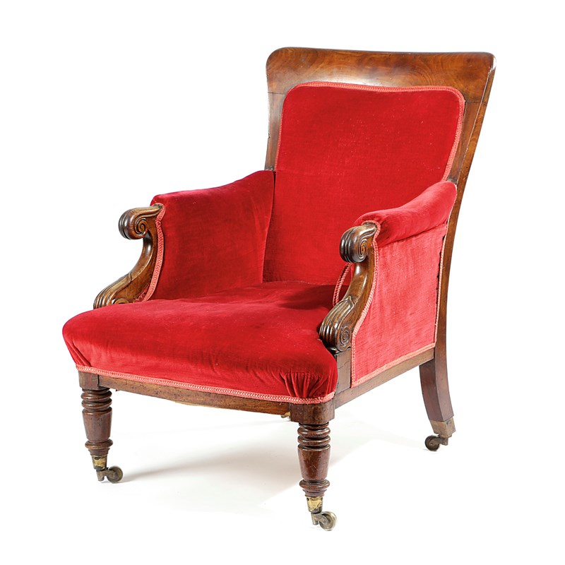 A WILLIAM IV MAHOGANY LIBRARY ARMCHAIR