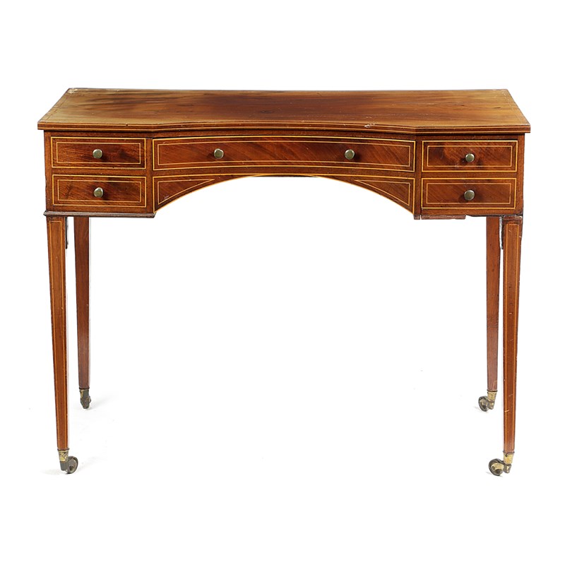 inlaid with boxwood stringing, with a concave front and fitted with four drawers