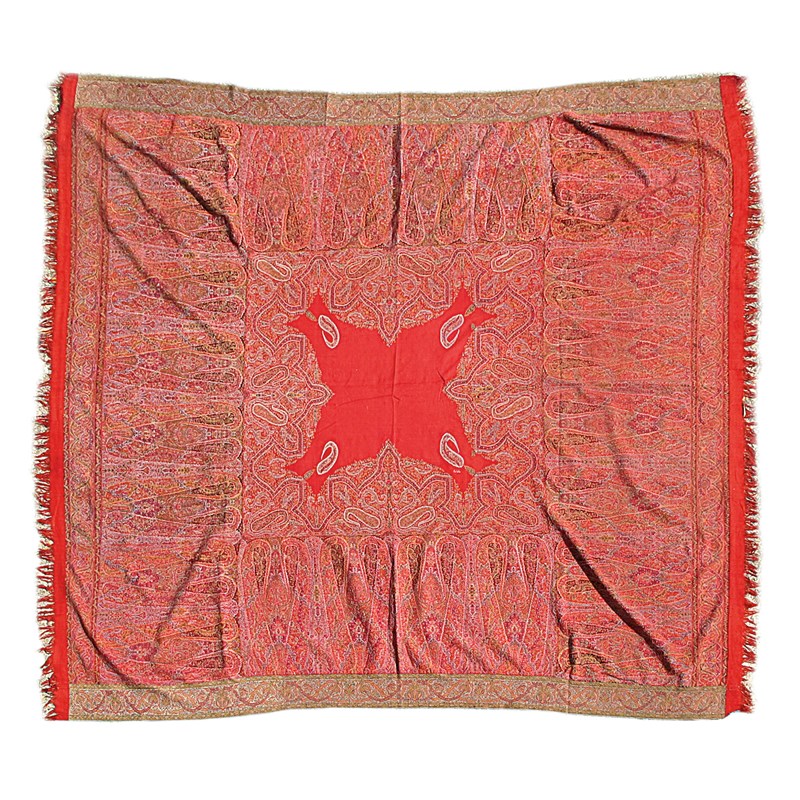 the brick red field of cruciform design enclosed by wide paisley borders and meandering vine outer borders, dated and signed indistinctly