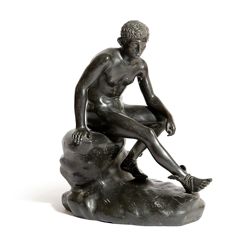 AN ITALIAN BRONZE GRAND TOUR FIGURE OF THE SEATED MERCURY
