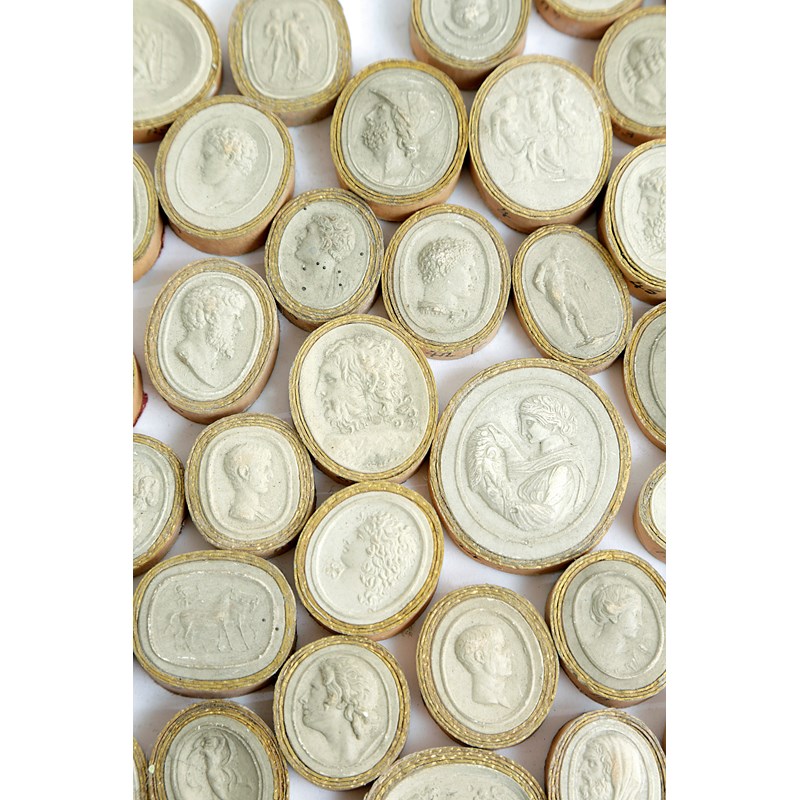 A COLLECTION OF FORTY-ONE PLASTER GRAND TOUR CAMEOS AND INTAGLIOS