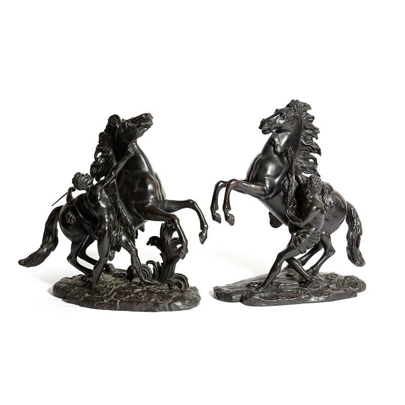A PAIR OF FRENCH BRONZE MARLY HORSE GROUPS