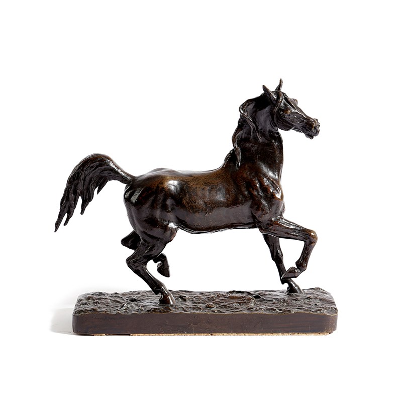 A FRENCH EQUESTRIAN BRONZE MODEL OF A PACING STALLION