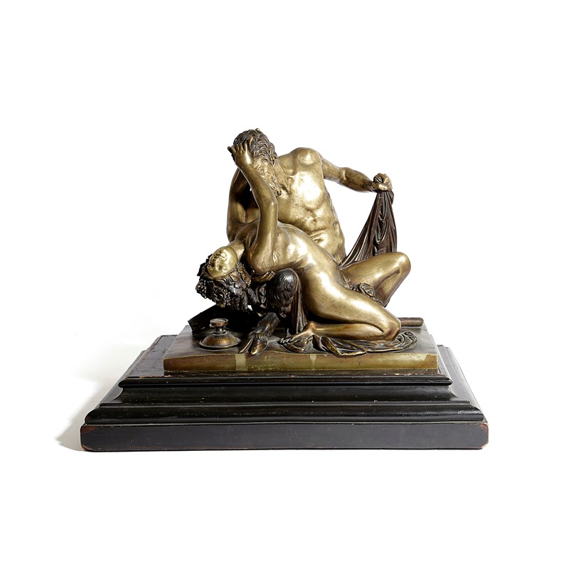 A FRENCH BRONZE GROUP OF A SATYR AND BACCANTE