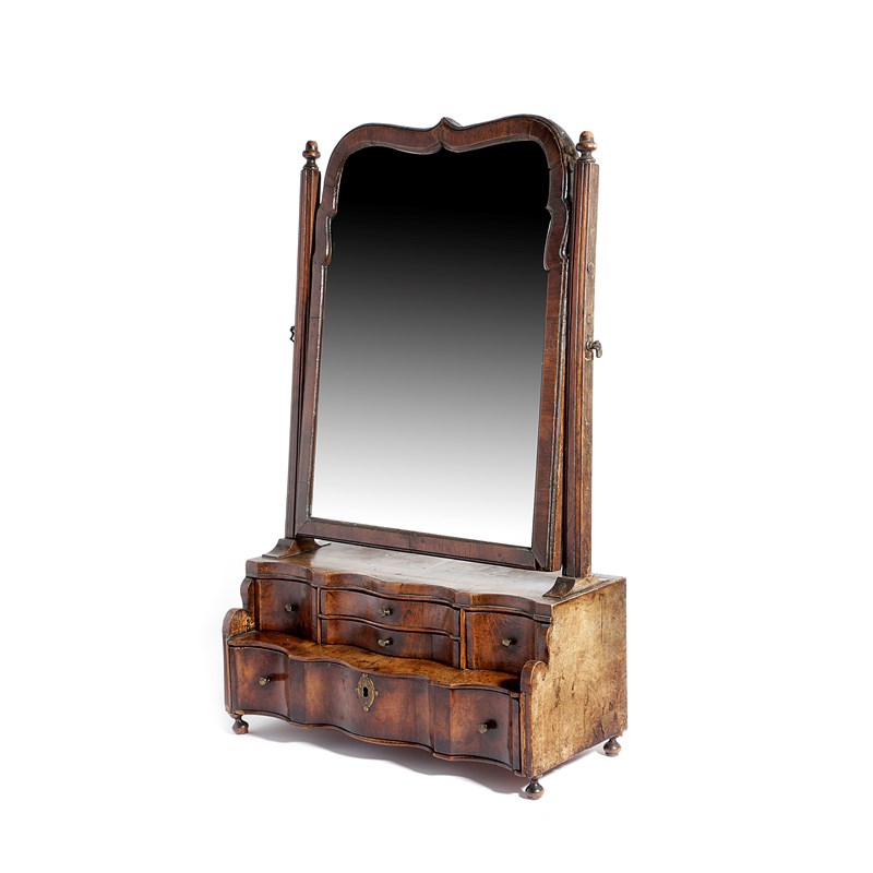 A GEORGE I WALNUT DRESSING TABLE MIRROR
