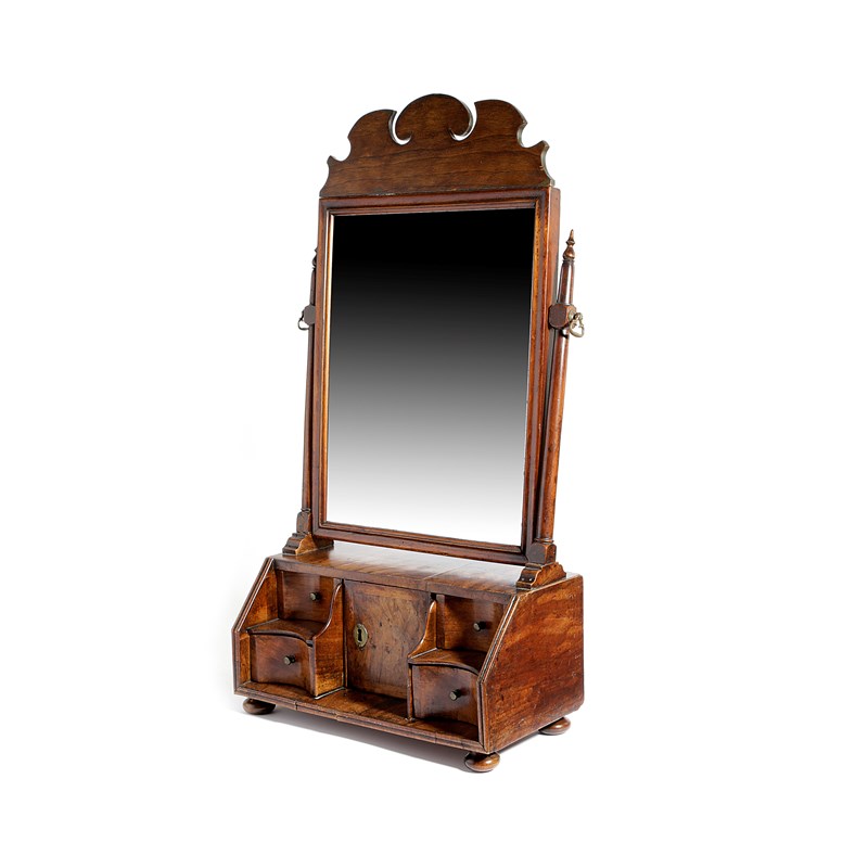 A GEORGE I WALNUT DRESSING TABLE MIRROR