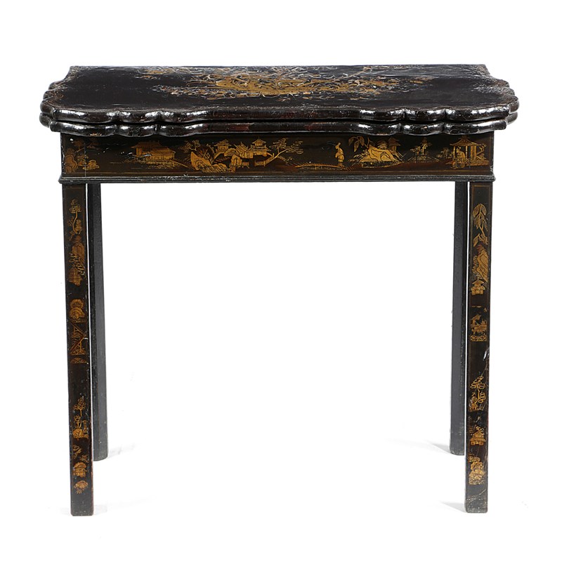 A GEORGE II JAPANNED SERPENTINE CARD TABLE