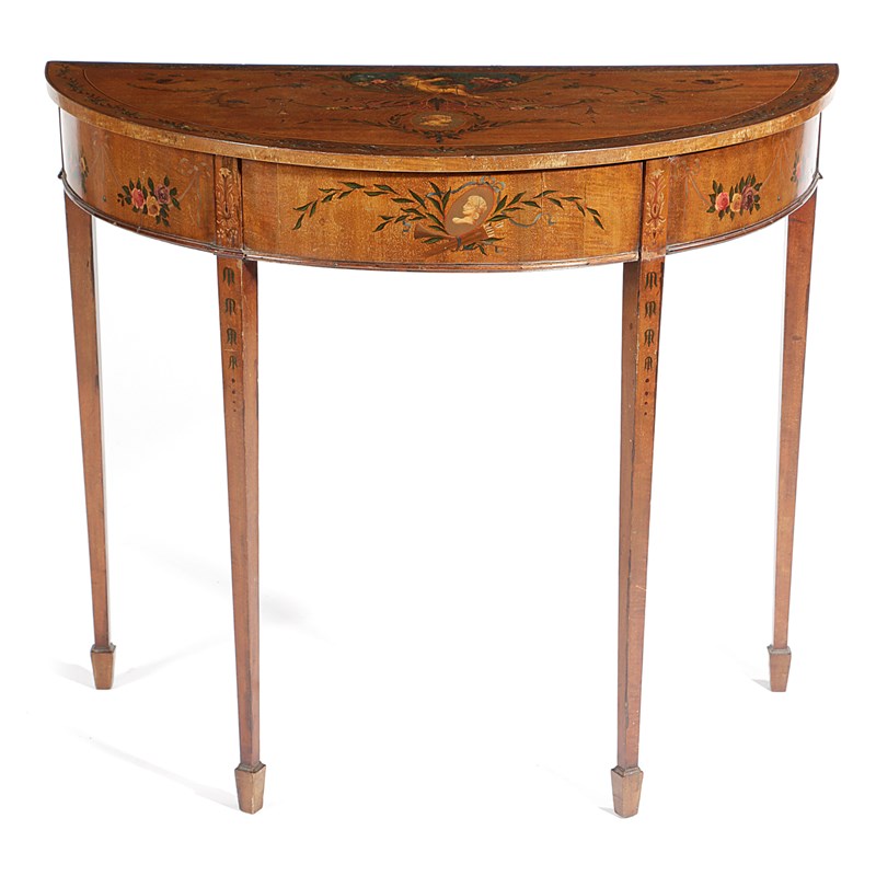 A SHERATON REVIVAL PAINTED SATINWOOD SIDE TABLE