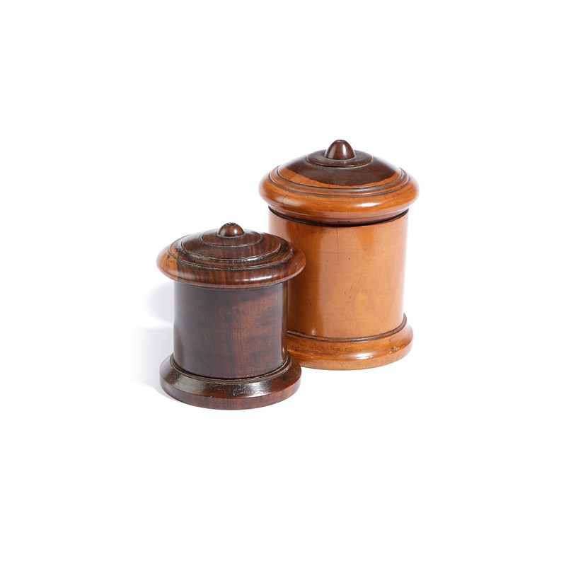 TWO VICTORIAN TREEN LIGNUM VITAE STRING BARRELS