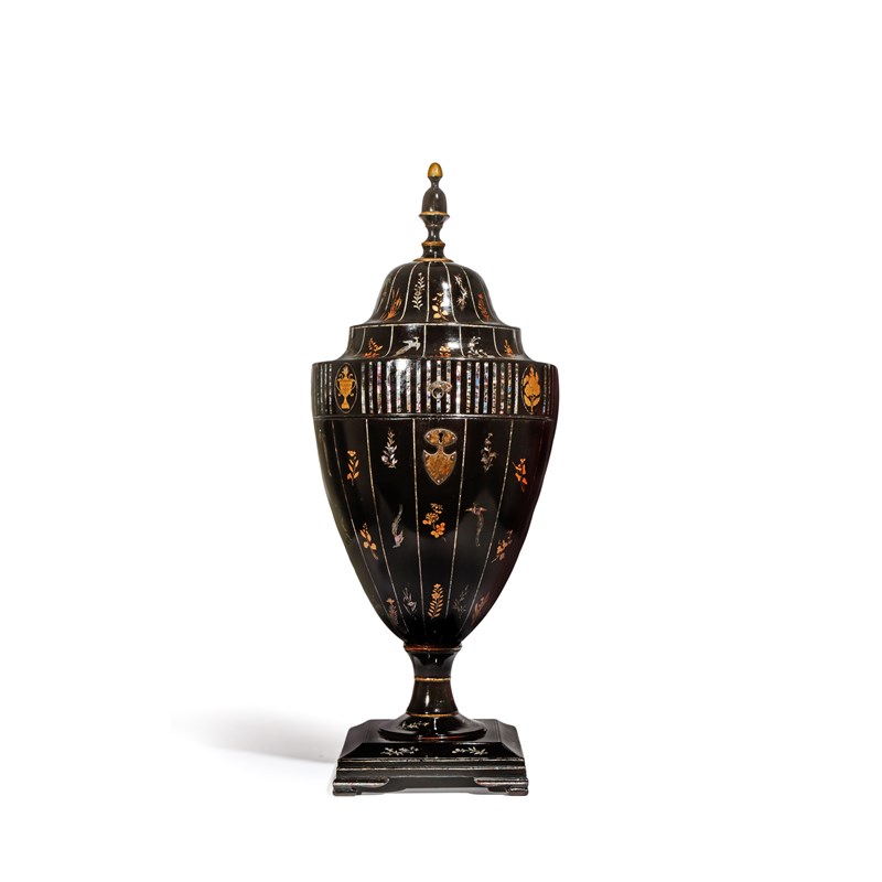 Cf. O Impey and C Jörg, Japanese Export Lacquer 1580-1850, pp.326-328 n.637, for a closely related knife urn at the Peabody Essex Museum, Salem, acquired by Captain Samuel Gardner Derby in 1801. Gardner Derby was Captain of the Margaret of Salem and traded in Nagasaki under charter from the VOC (Vereenigde Oostindische Compagnie), the Dutch East India Company.