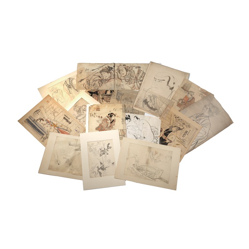 A COLLECTION OF JAPANESE PREPARATORY DRAWINGS FOR WOODBLOCK PRINTS
