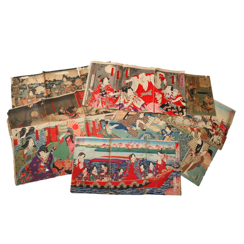 A COLLECTION OF EIGHT JAPANESE WOODBLOCK PRINT TRIPTYCHS