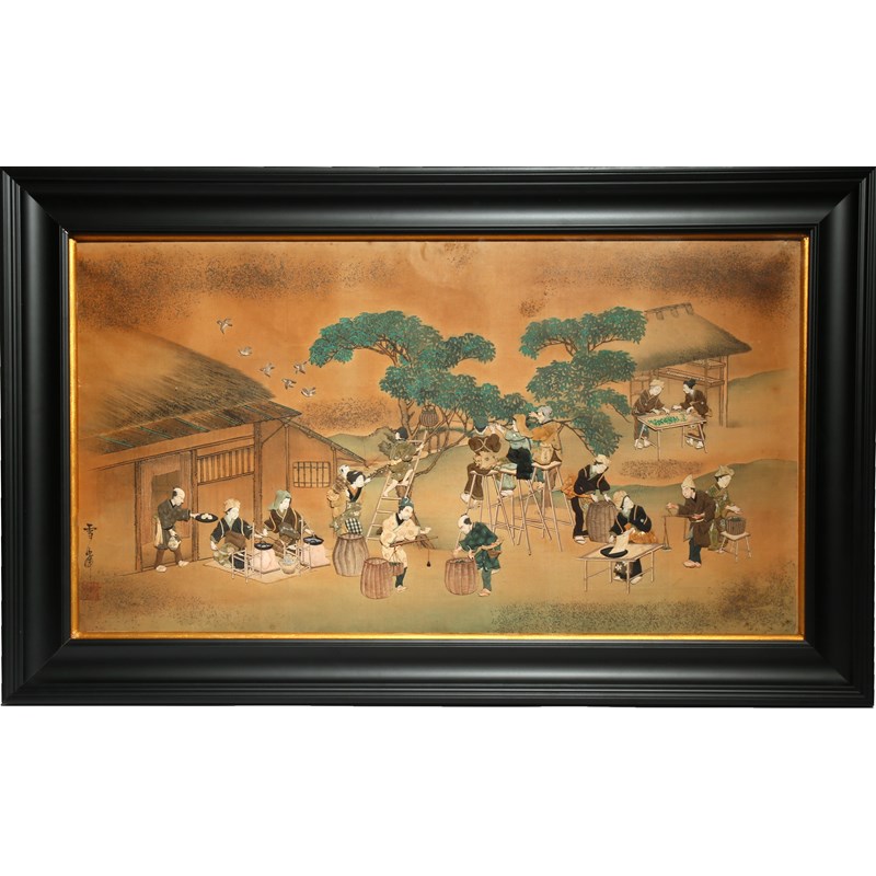 See Japanese Works of Art, 14th November 2018, lot 1063, for another oshi-e panel depicting sericulture by Sekka sold in these rooms.