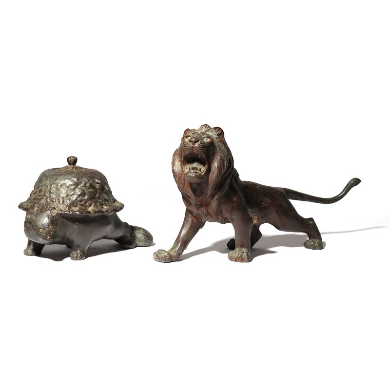 TWO JAPANESE BRONZE MODELS OF ANIMALS