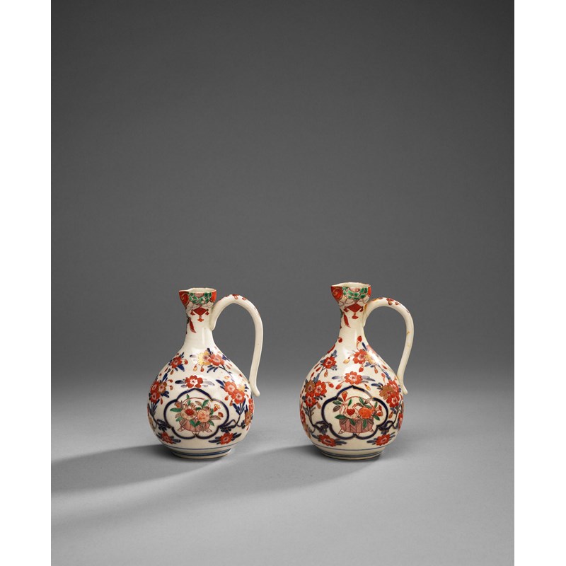 A PAIR OF JAPANESE IMARI EWERS
