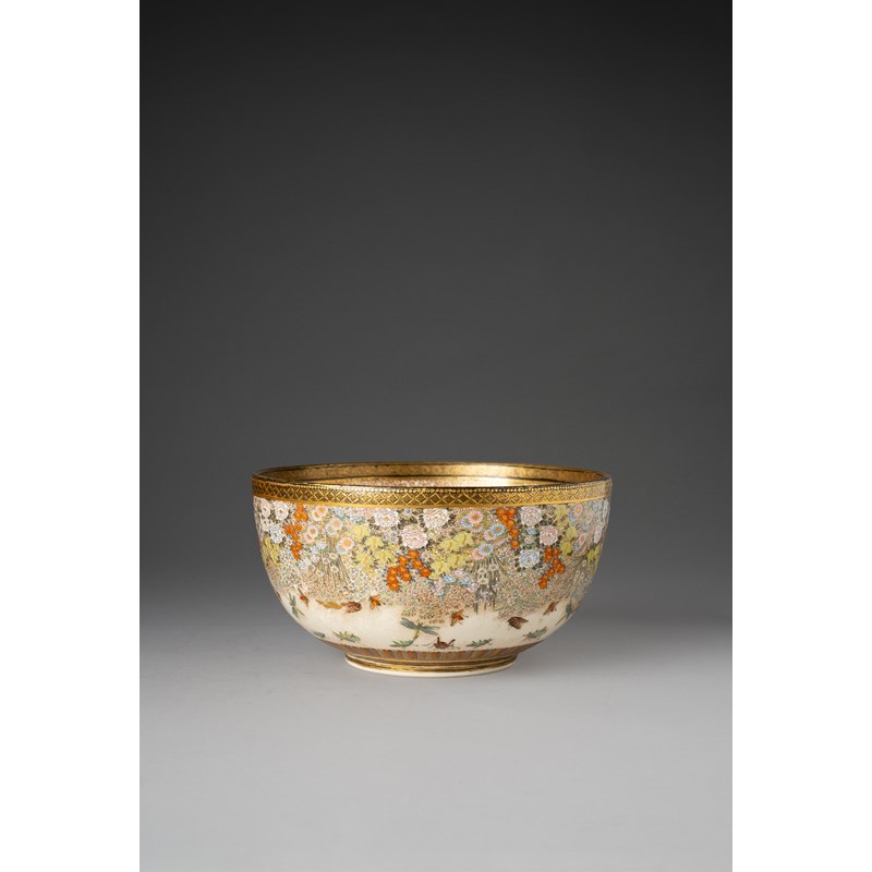 A LARGE AND IMPRESSIVE JAPANESE SATSUMA BOWL BY RYUZAN