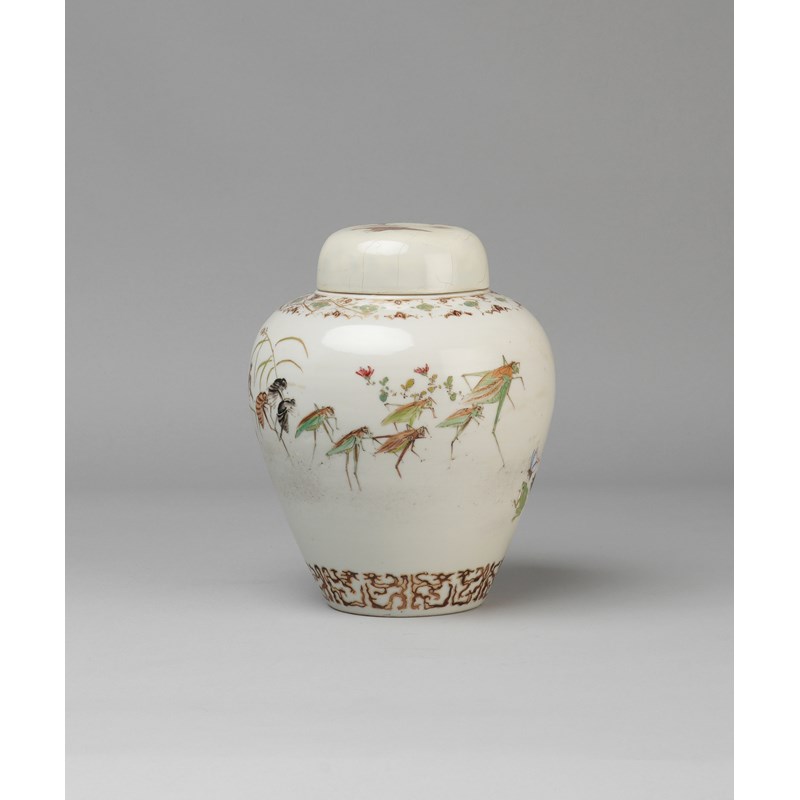 A JAPANESE VASE AND COVER WITH A PROCESSION OF INSECTS