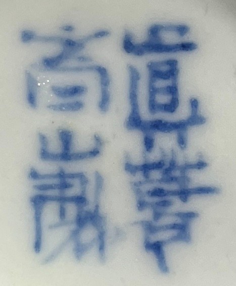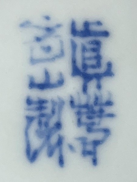 The tripod incense burner decorated in underglaze blue and bright overglaze yellow enamel, with panels made of scrolling tendrils enclosing ho-o birds and other mythical creatures and stylised flowers, the lid with clusters of auspicious emblems and coin-shaped apertures, the reverse of the lid and base inscribed Makuzu Kōzan sei, 13.5cm. (2)