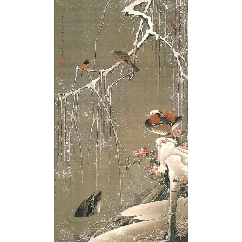 Mandarin ducks, known as oshidori in Japanese, are a powerful symbol of conjugal affection and fidelity because they typically mate for life. Depicting them in a serene, natural setting would have been a popular and meaningful motif for both Japanese and Western audiences. Scholars have suggested that Kōzan was inspired by animal painter Itō Jakuchū (1716-1800) and his picture 'Willow Tree and Mandarin Ducks in the Snow'.