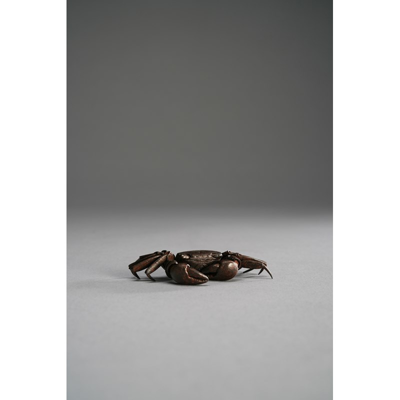 A SMALL JAPANESE IRON JIZAI OKIMONO OF A CRAB