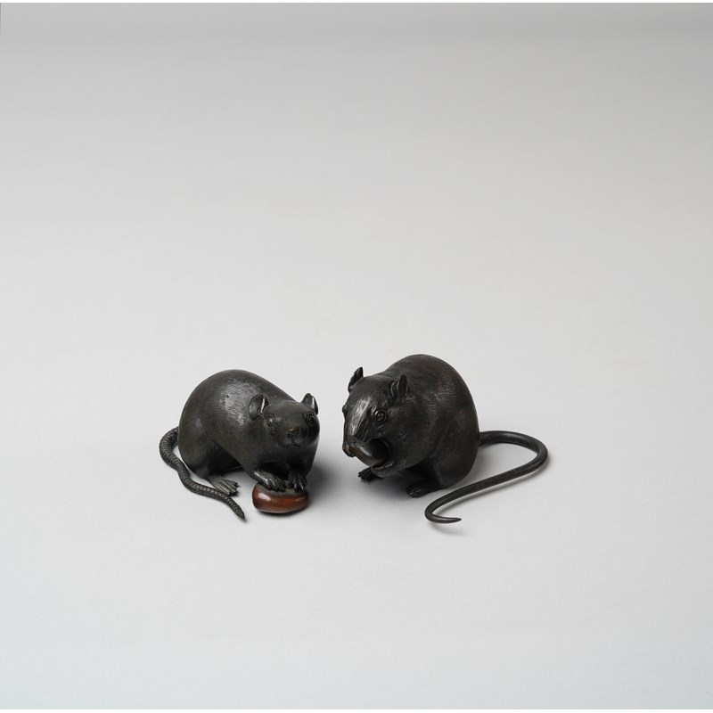 TWO JAPANESE BRONZE OKIMONO OF RATS