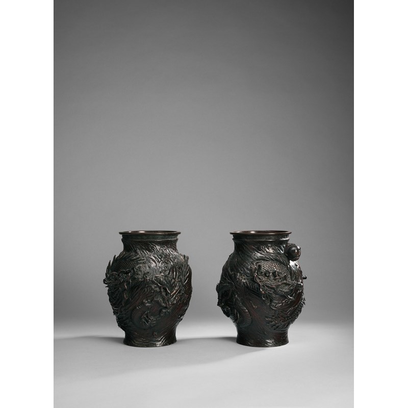 A PAIR OF JAPANESE BRONZE VASES