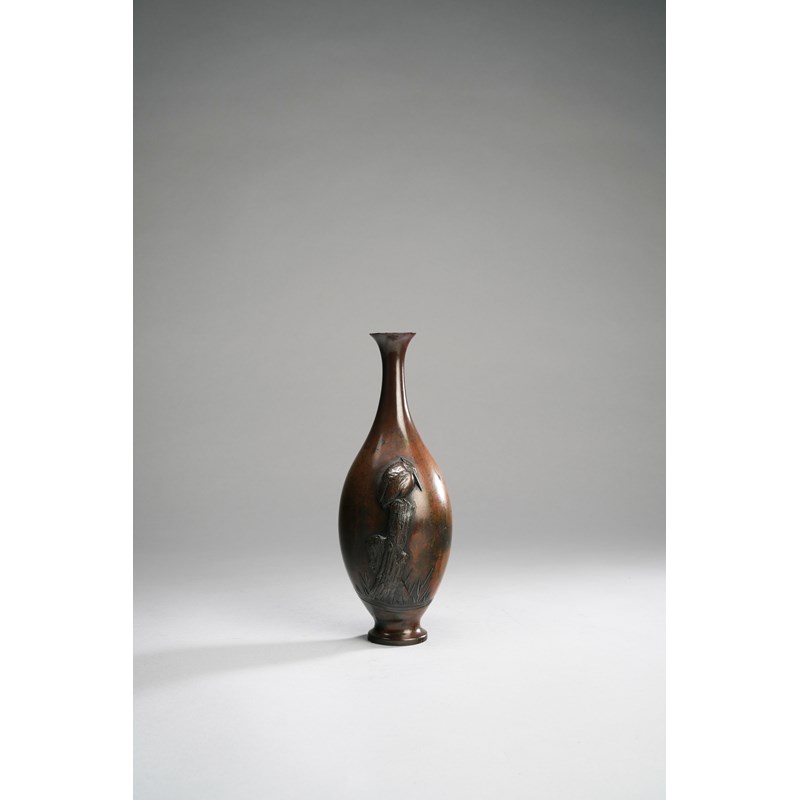 A JAPANESE SILVER-INLAID BRONZE VASE WITH EGRET