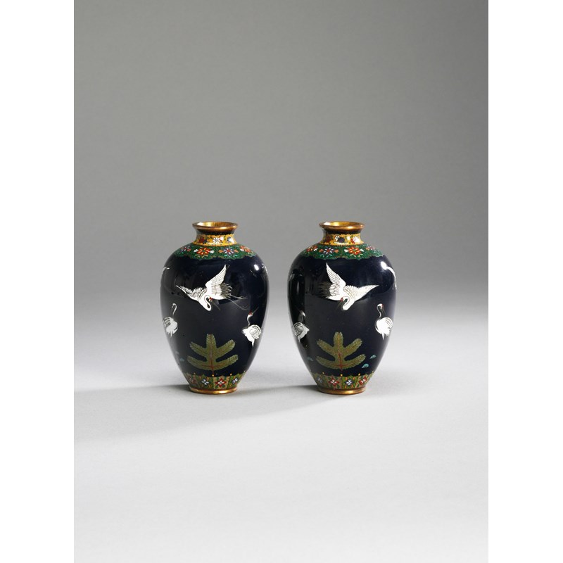 A PAIR OF JAPANESE CLOISONNE VASES