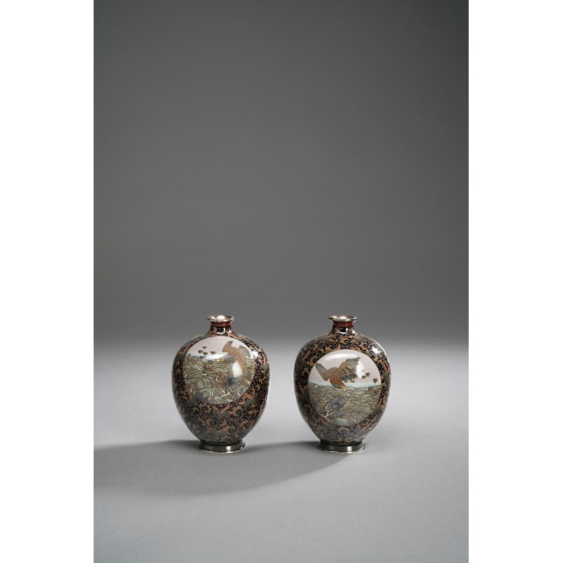 A PAIR OF JAPANESE CLOISONNE ENAMEL VASES