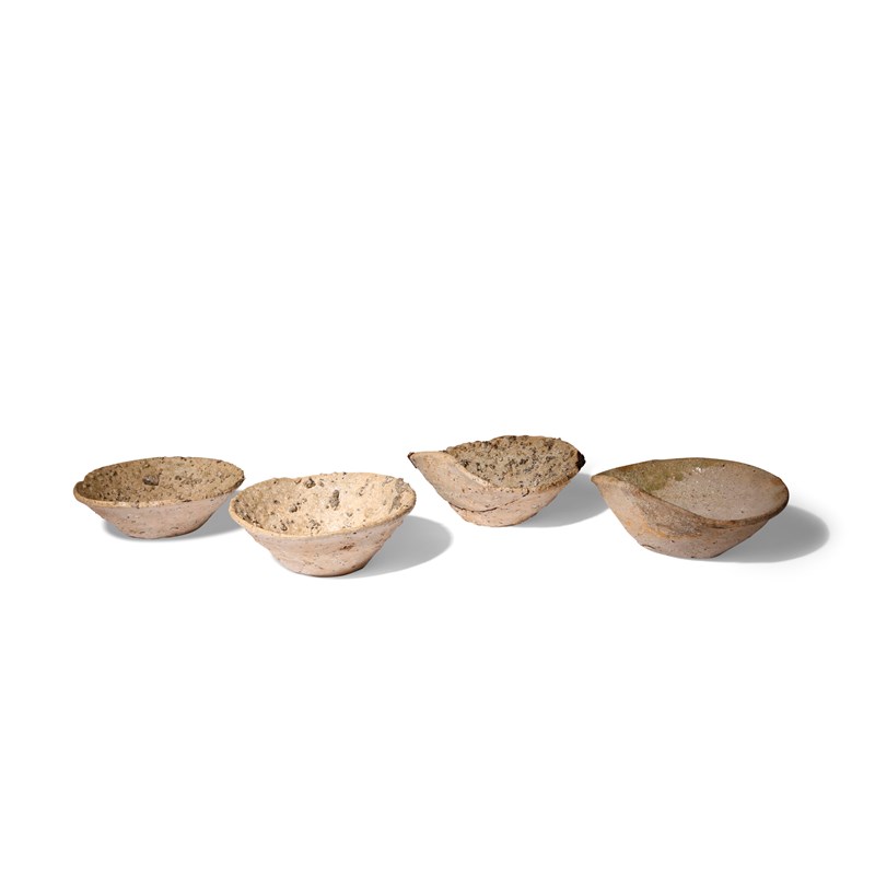 Each with an irregular conical shape and the surface peppered with grit, all approx. 14.5cm. (4)