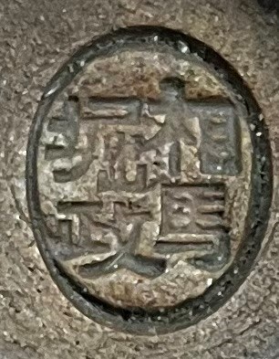 moulded with studs and with a suspension ring in low relief, the front with a prancing horse, some details highlighted in gilt, the base with a four-character Somayaki mark, 10.2cm.