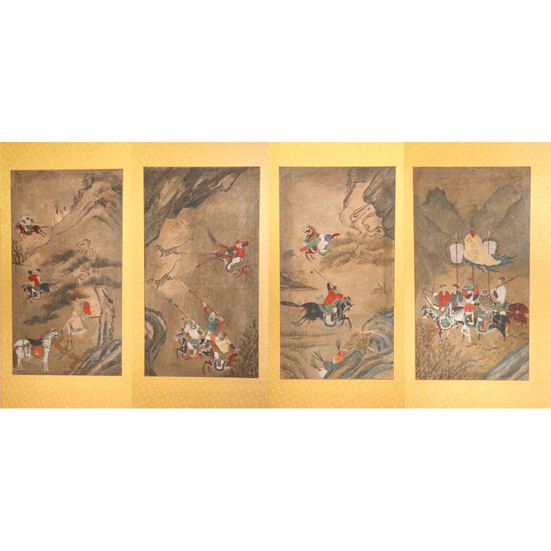 A KOREAN MINHWA FOUR-FOLD HUNTING SCREEN