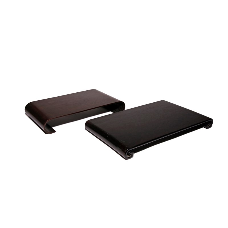 TWO JAPANESE WOOD SCROLL-SHAPED STANDS