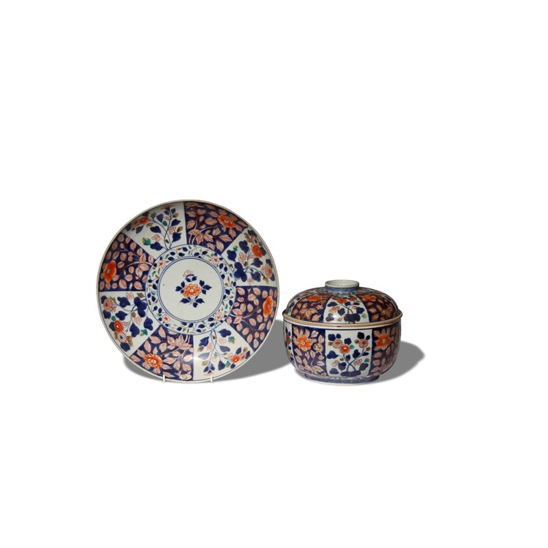 A JAPANESE IMARI TUREEN, COVER AND LARGE EN-SUITE DISH