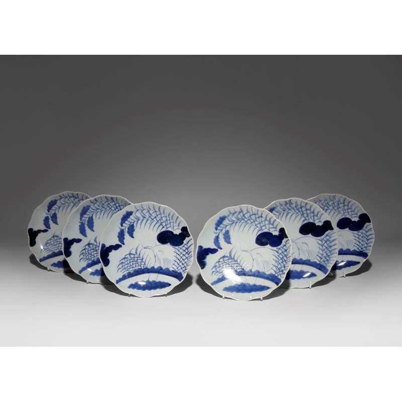 A SET OF SIX JAPANESE BLUE AND WHITE DISHES