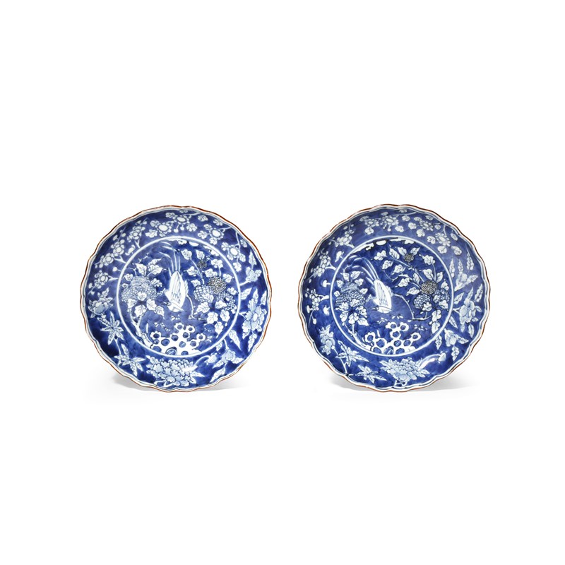 A PAIR OF JAPANESE ARITA BLUE AND WHITE DISHES 18TH CENTURY Both with scalloped edges and...