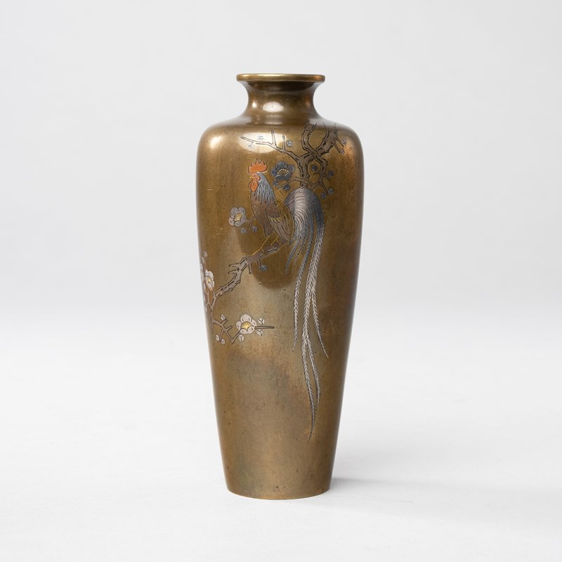 A JAPANESE SILVER-INLAID BRONZE VASE
