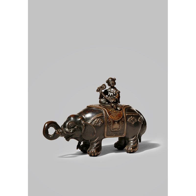 A JAPANESE BRONZE 'ELEPHANT' INCENSE BURNER