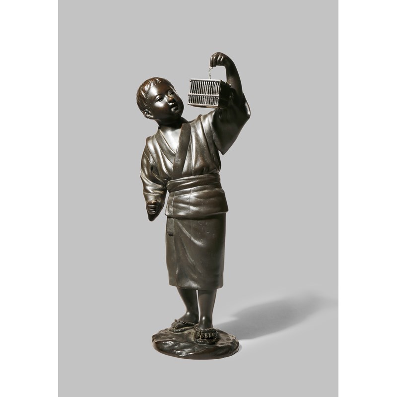 A JAPANESE TOKYO SCHOOL BRONZE OKIMONO OF A BOY