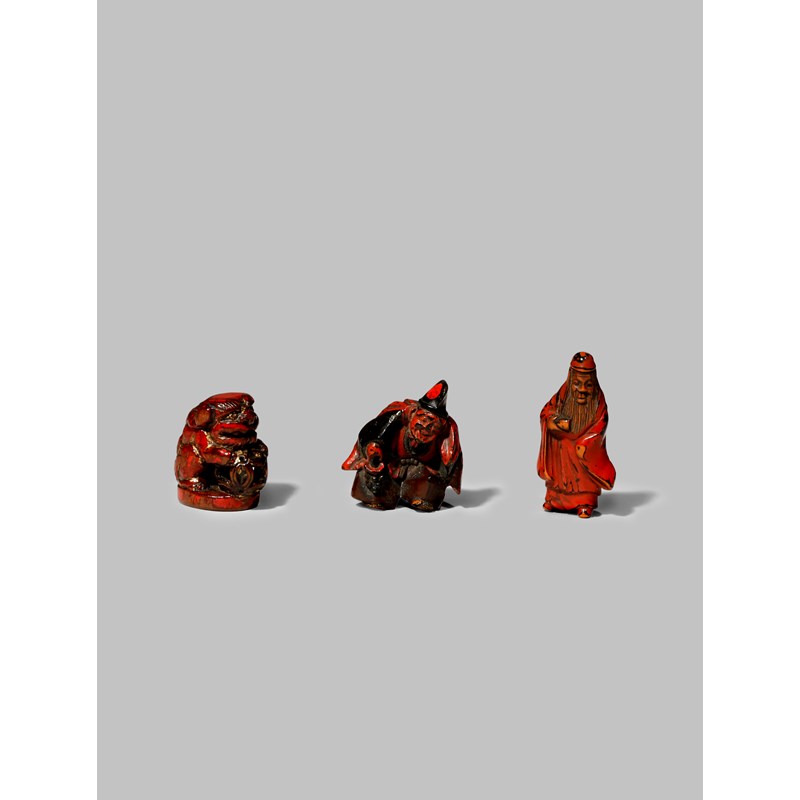 THREE JAPANESE TSUISHU LACQUER NETSUKE