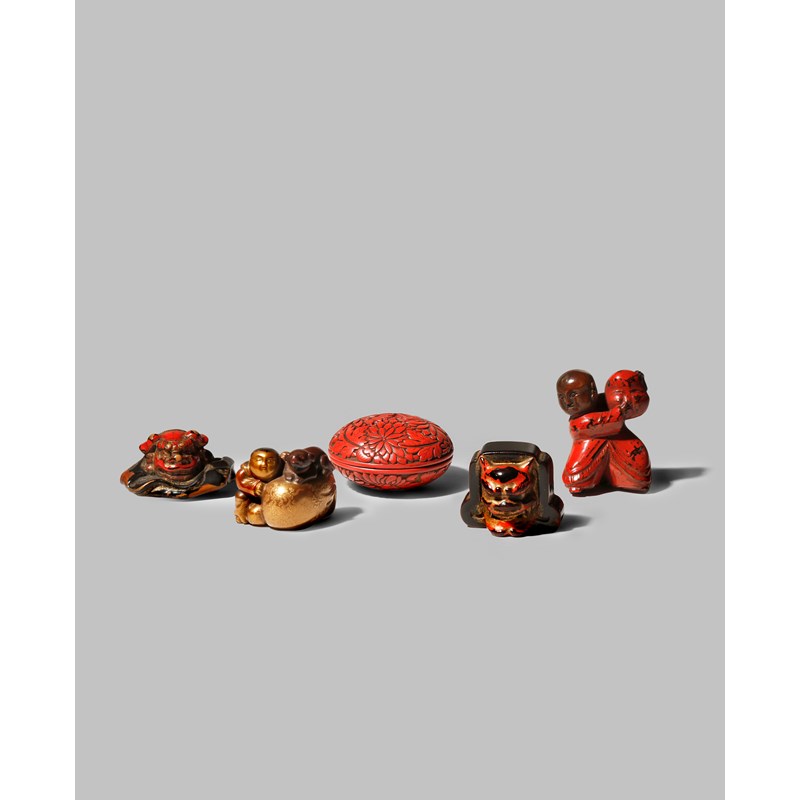 FIVE JAPANESE LACQUER NETSUKE