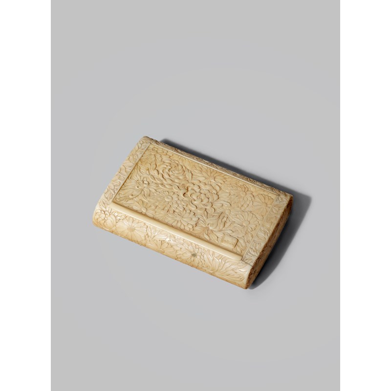 A JAPANESE IVORY CARD CASE MEIJI 1868-1912 Decorated all over with a dense pattern of flowerheads...