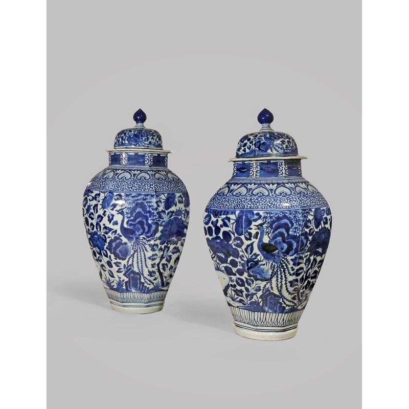 A NEAR PAIR OF LARGE JAPANESE ARITA BLUE AND WHITE VASES AND COVERS LATE 17TH CENTURY Of...