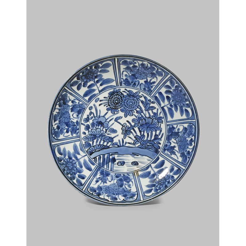A LARGE JAPANESE ARITA BLUE AND WHITE DISH 18TH /19TH CENTURY Decorated with a central panel of...