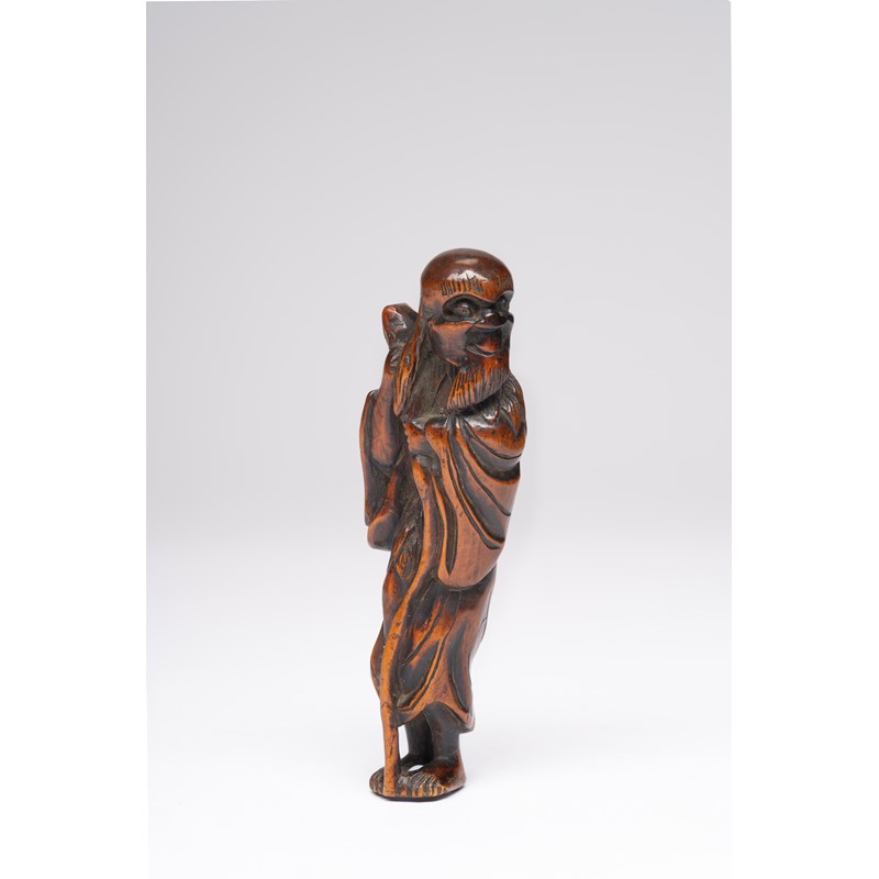 A TALL JAPANESE WOOD NETSUKE OF A SENNIN EDO PERIOD
